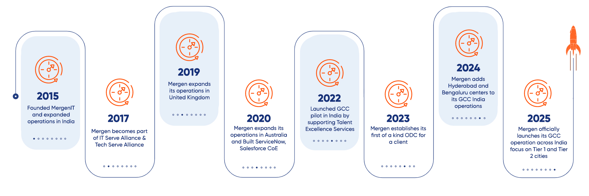 At Mergen Global, we offer a comprehensive suite of services designed to meet the diverse needs of businesses looking to leverage the power of Global Capability Centers (GCCs). Our offerings are tailored to provide flexibility, efficiency, and strategic value. Our goal is to not only facilitate growth but enable GCCs to thrive and lead, tailored to the specific culture, industry, and dynamics of the organizations.
